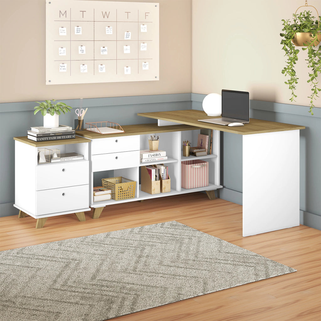 Trabalhe e estude de maneira organizada e produtiva com esta linda escrivaninha, perfeita para você transformar o ambiente em um local agradável e charmoso. Seu belo design retrô é proporcionado pelos pés angulados, detalhe que faz toda a diferença na aparência final. é muito versátil e tem estrutura flexível, podendo ser montado para o lado esquerdo ou direito, se adaptando ao seu espaço. Os nichos e as gavetas são ideais para manter o local organizado, já que guardam todos os seus objetos, livros e materiais com elegância. O amplo tampo garante muito conforto e comodidade, para você trabalhar ou estudar com muito espaço para seu computador, notebook, papéis e livros. Materiais e o revestimento de alta qualidade proporcionam a beleza e alta qualidade que sua casa merece!