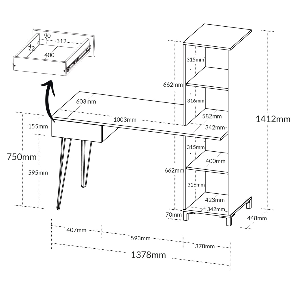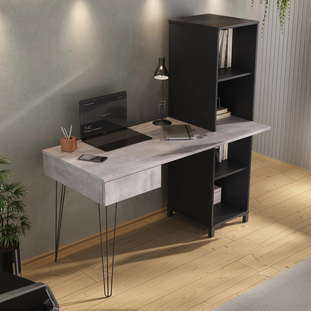 Com inspiração industrial, une traços retos e pés de metal "hairpin legs" à elegância do concreto com preto. Além do design contemporâneo, ela é funcional, com nichos, uma gaveta prática e um tampo robusto de 18mm para amplo espaço de trabalho. As bordas ABS e o acabamento BP garantem suavidade ao toque e durabilidade. Ideal para elevar o home office ou escritório com seu design moderno e funcionalidade, a Fusion é a escolha perfeita para quem busca beleza e praticidade.