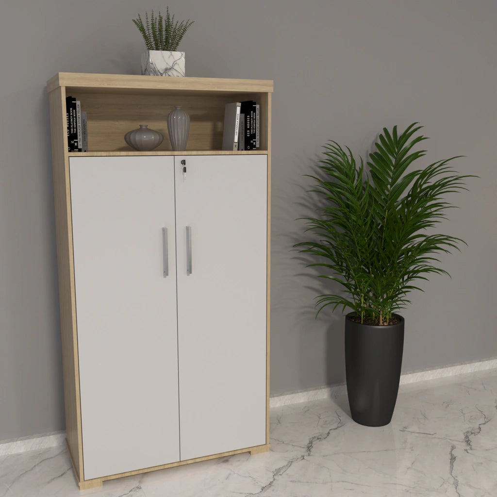 Por dentro, você encontrará três prateleiras espaçosas, perfeitamente estruturadas para garantir a segurança e a organização de todos os seus materiais e pertences. E quando se trata de proteger seus itens mais importantes, as portas do armário podem ser trancadas, proporcionando tranquilidade total.