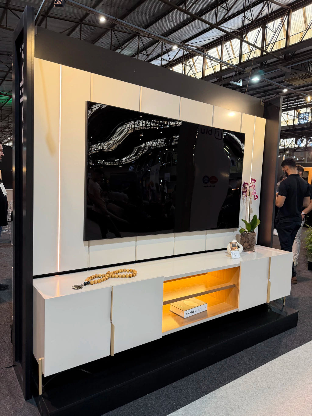 Painel: Detalhes chanfrados ao longo do painel, LED em ambos os lados com luminárias slim.